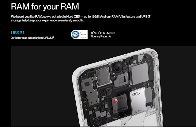 There are two RAM variants for the OnePlus Nord CE 3: 8GB and 12GB. The device's ability to multitask and overall performance are greatly influenced by the RAM. The OnePlus Nord CE 3 can manage multiple apps running at once without noticeably lagging or slowing down thanks to its 8GB or 12GB of RAM. Users may easily switch between programs, and the user interface is quick and fast.