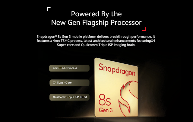 The phone is powered by the Qualcomm Snapdragon 8s Gen 3 processor, which provides fast performance for daily tasks and moderate gaming. Although it may not be as powerful as the Snapdragon 8 Gen 2 found in other flagships, it is still capable of handling demanding applications and multitasking.